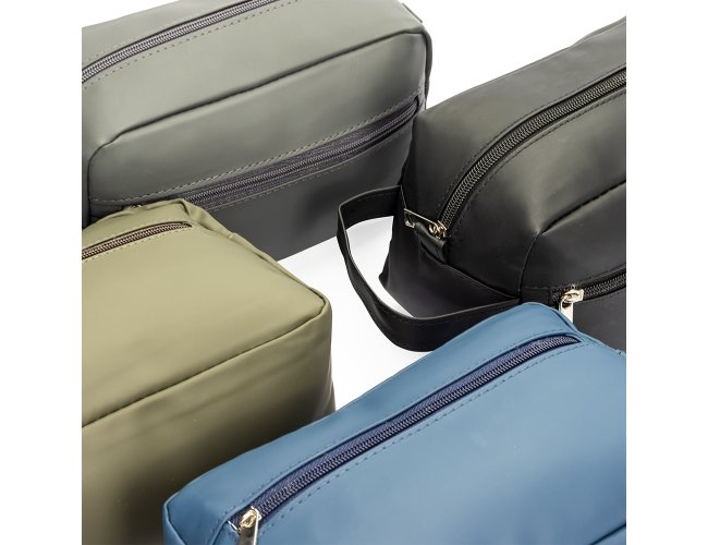 Nécessaire confeccionado em couro sintético impermeável.